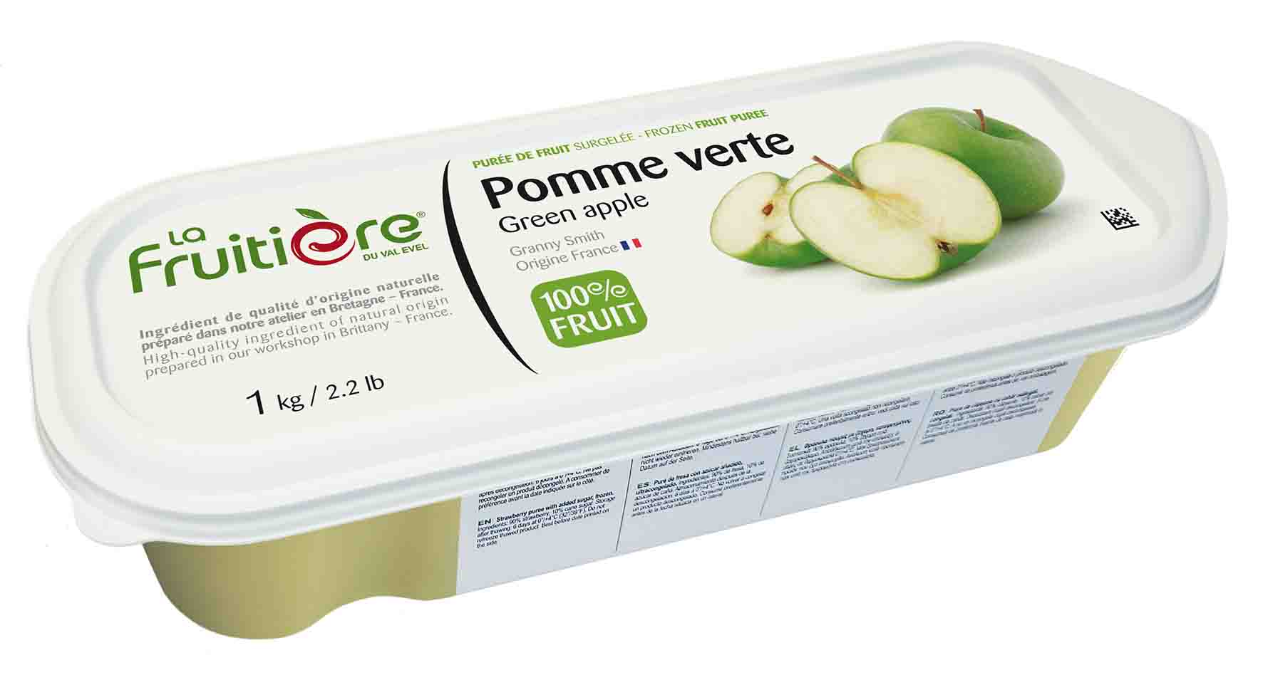 Élaborée par broyage et raffinage de Granny Smith origine France. Approvisionnement du fruit de saison, en frais.